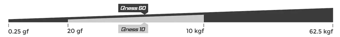 Qness 60 A+: 0.25 gf - 62.5 kgf (0.00245 - 612.92 N) |