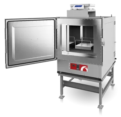 Under inert gas custom made ovens and furnaces can be fitted with a balance for continuous sample weighing. A heated gas outlet with either an active after burner or a condensation trap is recommended for certain amounts of organic matter.