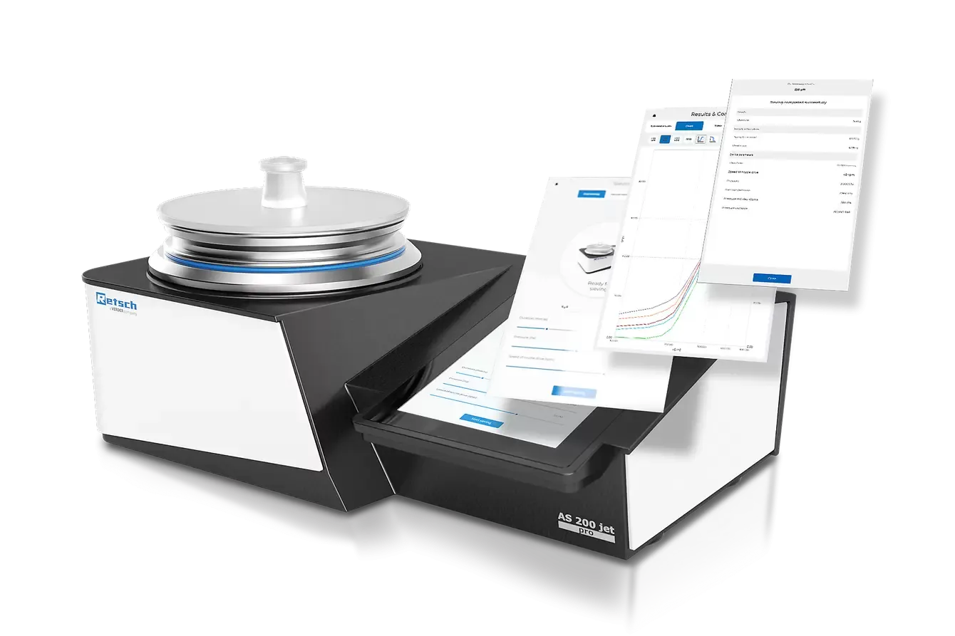 For sieving specialists: With the AS 200 jet pro and the GMP-conform AS 200 jet pharma, laboratory teams get a space-saving and user-friendly all-in-one sieving machine.