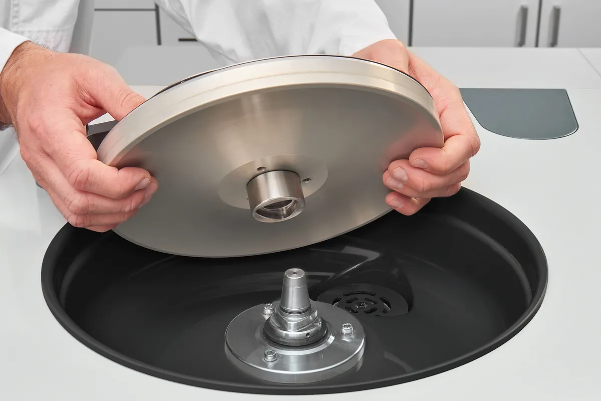 The new holder for the working wheel (single-disc design) enables metallographic sample preparation without carrier disc and without compromising performance. The control software allows to edit and save up to 200 preparation methods, protected by a user account management.