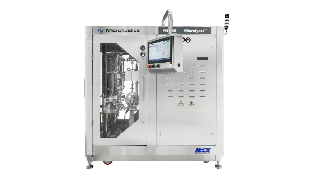 Мікролізер MP350 є ефективним рішенням для застосування технології руйнування клітин. Використовуючи гібридний підхід, який включає запатентовану технологію Microfluidics Interaction Chamber, з унікальною санітарно-гігієнічною електричною насосною системою, мікролізер MP350 забезпечує чудові результати руйнування клітин. Мікролізер MP350 має такі ж багатощілинні камери взаємодії з фіксованою геометрією, як і все обладнання Microfluidics. Ця технологія гарантує, що 100% матеріалу проходить ідентичні умови, і гарантує повторюваність результатів від партії до партії при будь-яких обсягах виробництва.