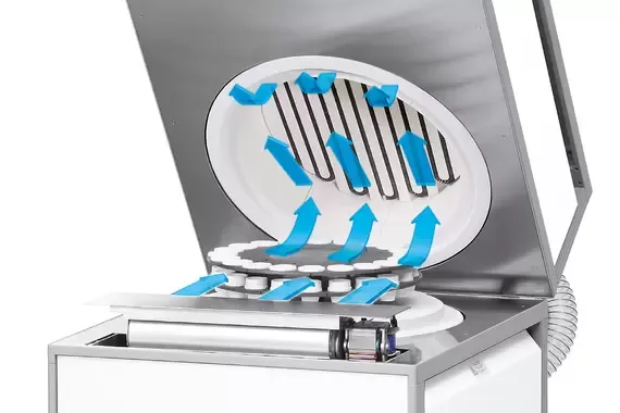 Також можна розмістити другу карусель з кришками тиглів над тиглями. Після завершення аналізу можна починати новий цикл після короткого періоду охолодження.