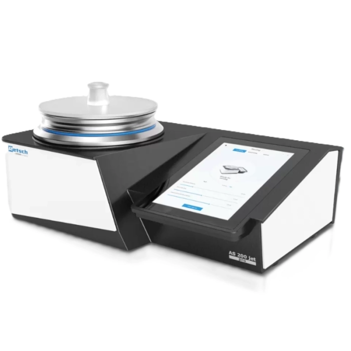 AS 200 jet pro / pharma оснащен вращающейся щелевой форсункой, над которой расположены сито и крышка. Вакуум создает мощный воздушный поток, который вращает частицы образца на сите и распределяет их. Образец материала, размер которого меньше размера отверстий сита, транспортируется обратным потоком воздуха к циклону или пылесосу. Поток воздуха также обеспечивает непрерывное разбивание агломерированных частиц (деагломерация) и очистку сетки сита.